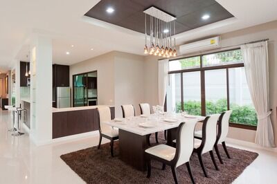 近百坪的大宅格局,擺脫常見將各項生活機能分項獨立的大坪數空間運用模式,僅配置三間完整的套房,與必要生活機能,使每個空間顯得落落大方,寬敞且舒適。於此空間中,納入大器內斂的石材運用,橫向的石材紋理幾乎鋪陳了整個公領域立面,僅局部保留給線板優雅比例的留白,軟件與裝飾的穿插運用,展現不凡的大宅優雅貴氣。
